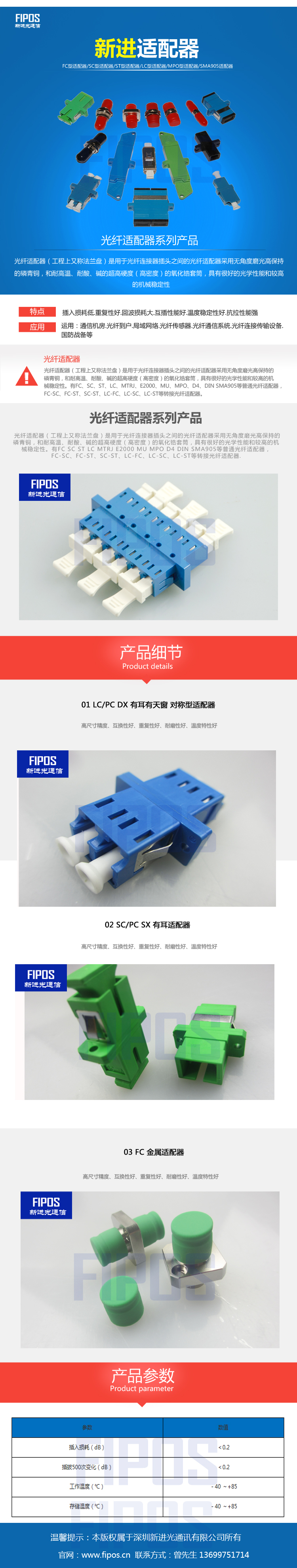 特点:插入损耗低、重复性好、回波损耗大、互换性能好、温度稳定性好、抗拉性能强