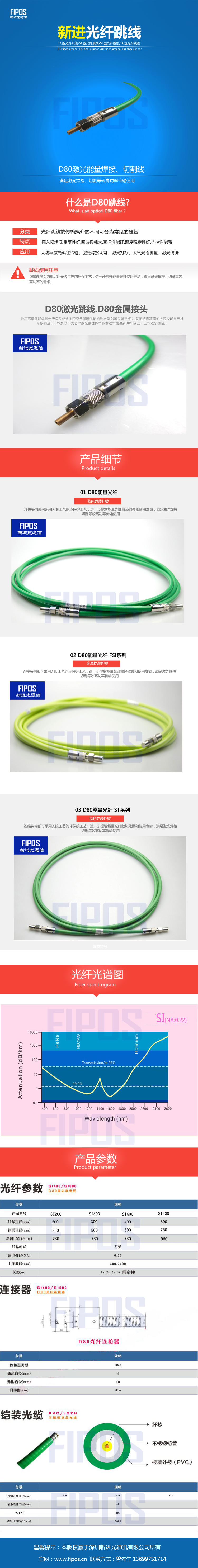 特点:采用高精度能能量光纤接头或端头带空气间隙保护的改进型D80金属连接头.装配端面精磨的大芯径能量光纤可以满足600W及以下大功率激光柔性传输传输效率能达到90%以上,工作效率稳定